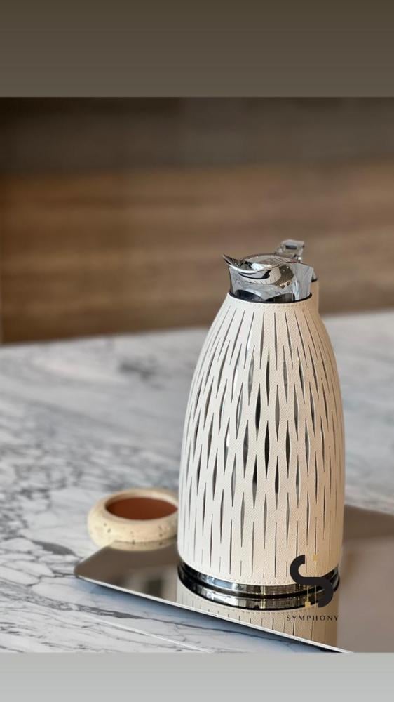 ترامس شاي ستانلس ستيل من الداخل والخارج بغطاء جلد قابل للنزع وقت الغسيل