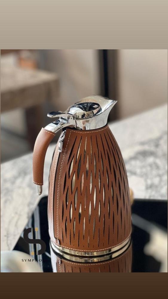 ترامس شاي ستانلس ستيل من الداخل والخارج بغطاء جلد قابل للنزع وقت الغسيل